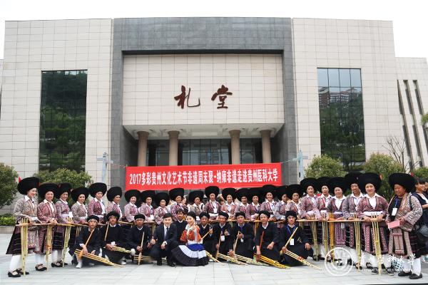 6月18日,2017多彩贵州文化艺术节非遗周末聚·纳雍非遗系列活动走进贵州医科大学校园。党委副书记吕保平,贵州省非遗中心主任龙佑铭,纳雍县委常委、宣传部部长郭宇,副县长鲍曙光等相关领导出席活动。学校党委办公室、校长办公室、党委宣传部、学生处、团委、保卫处、后勤管理处等相关部门负责人参加活动。