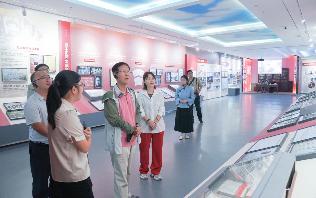 会前,在党委宣传部陪同下,何旭一行参观了校史馆,通过珍贵史料重温学校在抗战时期筚路蓝缕的建校历程,感受父辈们坚守革命理想、投身红色教育的感人故事。