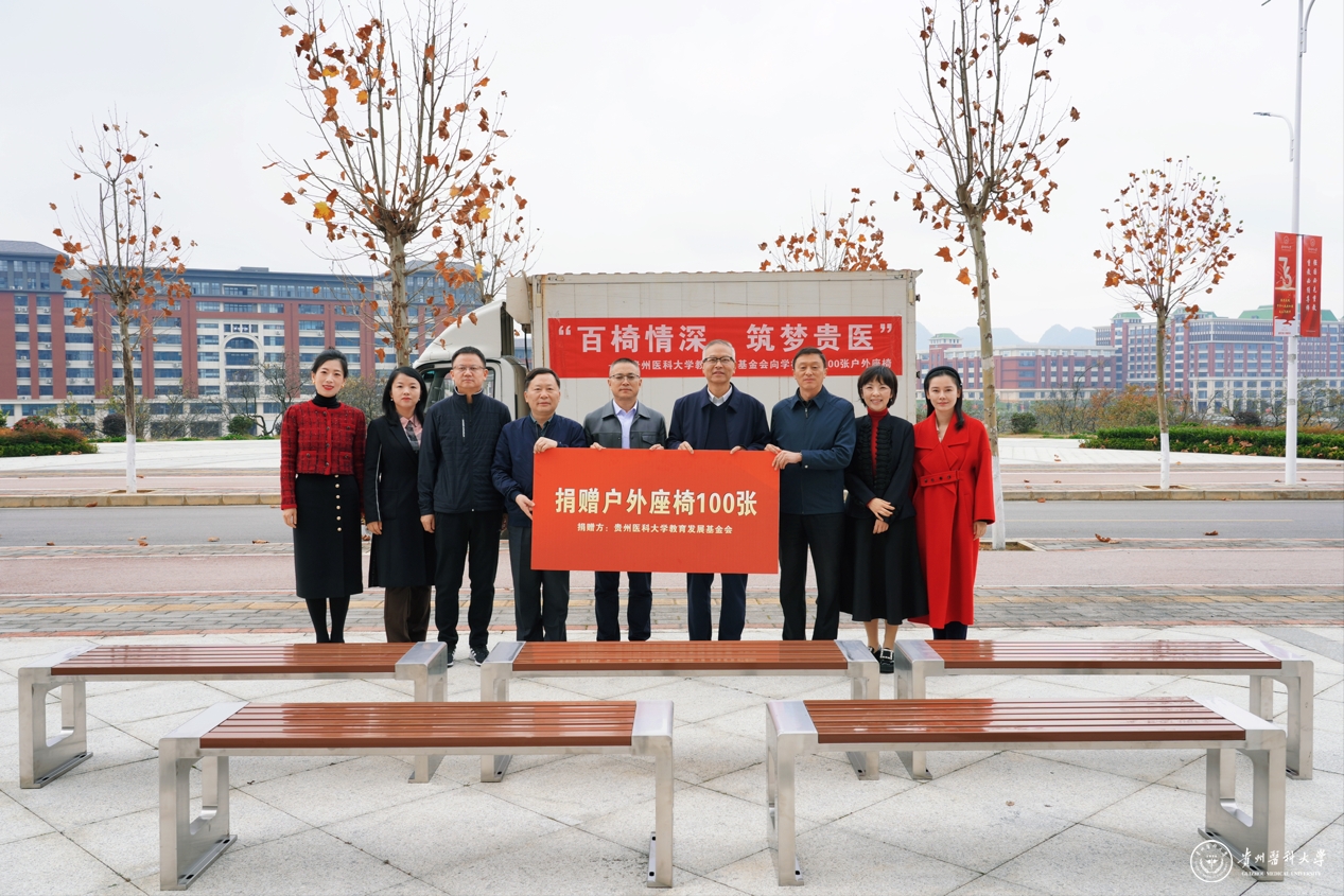近期,校园里悄然增添了一道温暖而静谧的风景线——由贵州医科大学教育发展基金会捐赠的100张户外座椅。在副校长潘卫东、教育发展基金会理事长郭兵的见证下,户外座椅捐赠仪式在知雨楼前顺利举行,党委宣传部、党委学生工作部、校友会、校团委、基建处、后勤管理处等多部门,以及校友代表共同参与。目前,这批户外座椅已陆续安置在校园的多个角落,为师生提供更多休憩与交流的空间。