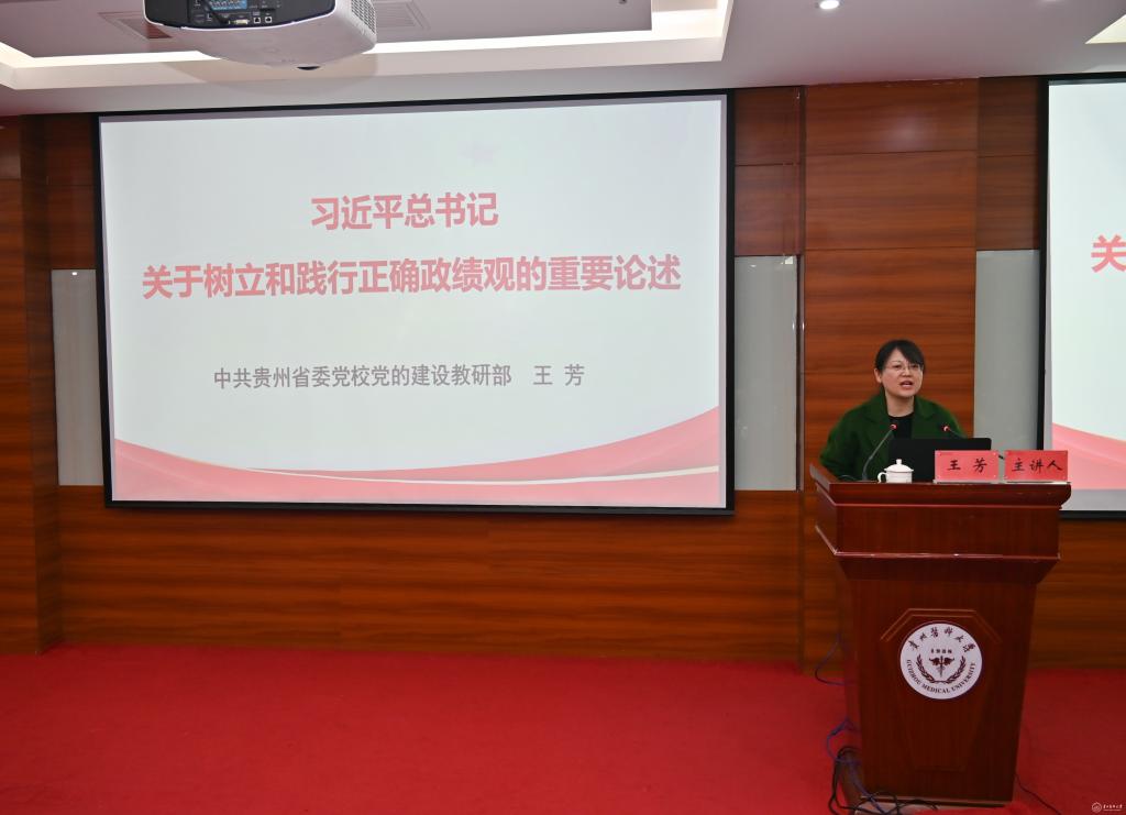 3月19日上午,学校树立和践行正确政绩观学习教育读书班开班式暨专题辅导在北京路校区临床技能中心举行。校党委书记汤磊作开班式动员讲话,校党委副书记张洁主持。此次读书班邀请到贵州省委党校党的建设研究部副主任王芳教授作专题辅导。
